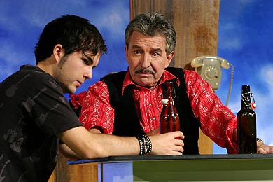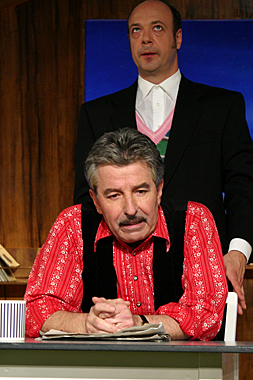 Ist der Franke als solcher im ungeliebten Bayern an sich schon ein Unikum, so wird er völlig zur Lachnummer, wenn er den Mund aufmacht … Ein Grantler und "Sotterer", der sich über "die Anderen" das Maul zerreißt, aber nichts auf sich und Franken kommen lässt. Nur so ist der Titel des jüngsten Stücks des fränkischen Mundartautors Helmut Haberkamm zu verstehen: "Der Frankenhasser" ist ein Misanthrop aus dem Geiste Molières, der allem Fremden - Franken ausgenommen - Feind ist. Jetzt brachte das Staatstheater Nürnberg diese Auftragsarbeit an den aus dem fränkischen Aischgrund stammenden, heute in Erlangen lebenden Autor als stürmisch gefeierte Uraufführung in den Kammerspielen in der Regie von Alexander Schilling heraus.