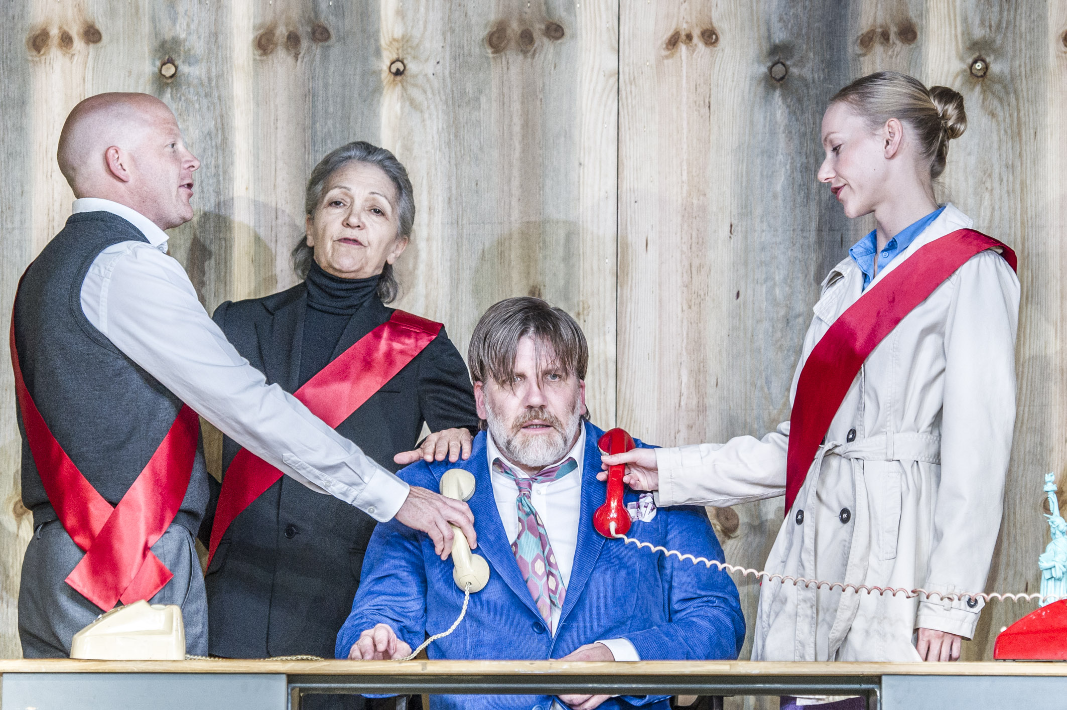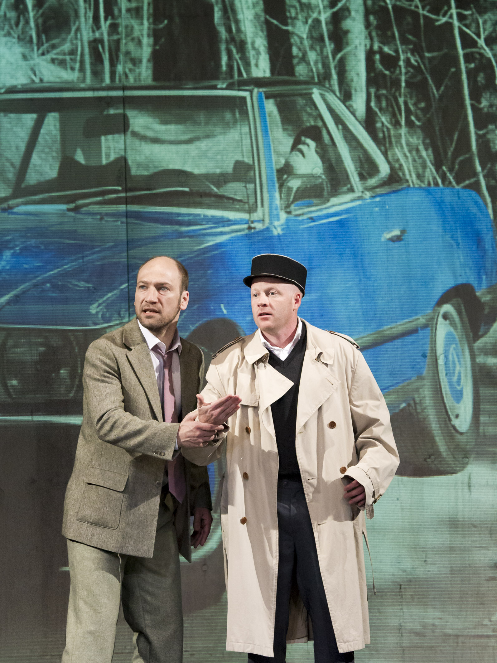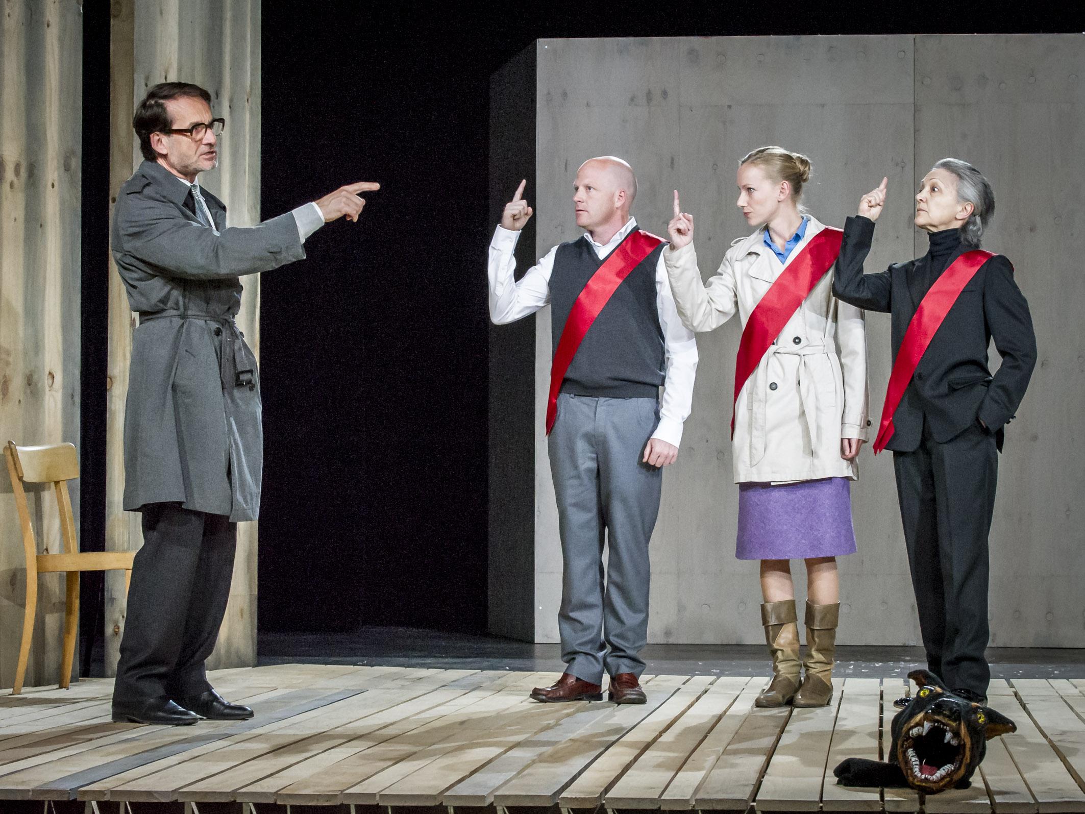 Ganz im Sinne Dürrenmatts ist es also weniger eine mitreißende Mörderhatz, die Schilling auf die von Julia Scholz gestaltete Bühne der Kammerspiele bringt, sondern eine durchdachte, beruhigend wenig effekthascherische Versuchsanordnung. Dass diese nicht statisch ausfällt oder sich im besserwisserisch Lehrstückhaften verliert, liegt zum einen an Schillings eindrücklicher Nutzung der Drehbühne, die das Geschehen sprichwörtlich antreibt. Vor allem aber ist es dem durchwegs überzeugenden Ensemble geschuldet: Andreas Wobig lässt seinen Kommissär Bärlach mit kleinen Gesten vom Zweifler zum Zyniker werden. Eleonore Bürcher spielt den dämonischen Gastmann mit nachgerade diabolischer Gelassenheit. Timo Senff taumelt als Tschanz wunderbar zwischen Pflichtbewusstsein und Wahnsinn. Und Jan-Hinnerk Arnke, Marion Fuhs und Gerhard Kasal beweisen in gleich mehreren größeren und kleineren Rollen komisches Talent.