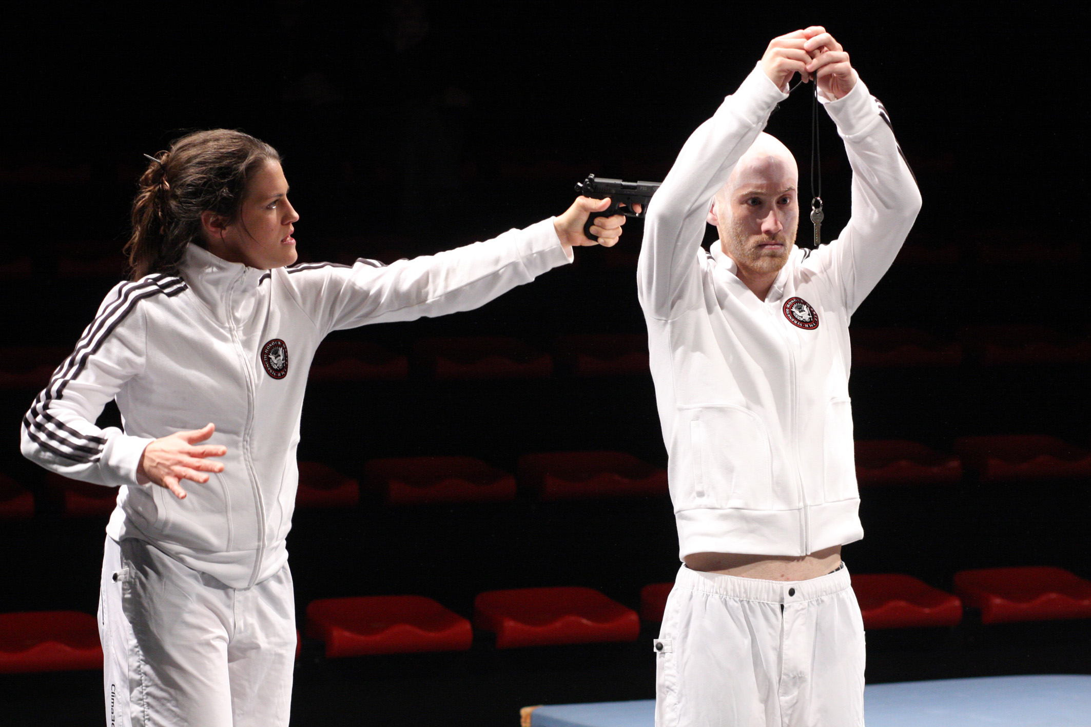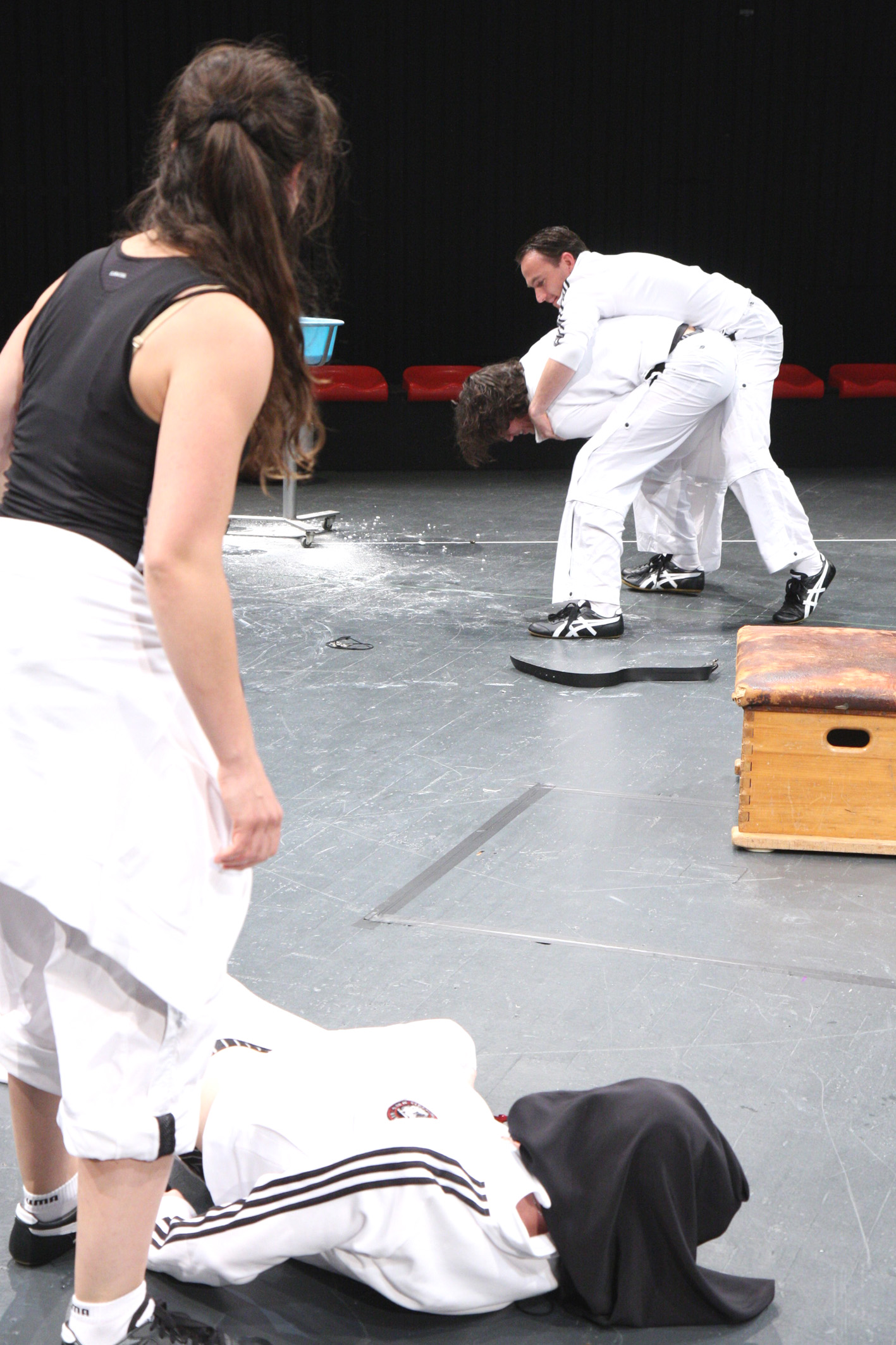 Regisseur Alexander Schilling und Ausstatterin Jacqueline Schienbein inszenieren das Stück in der aseptischen Turnhalle mit Wasserbecken wie einen strengen Wettkampf oder ein klinisches Experiment. Das Opfer Basini und seine drei Folterknechte Törleß, Reiting und Beineberg tragen alle den gleichen Sportdress und sind kaum zu unterscheiden. Basini ist in diesem Quartett der gesellschaftliche Underdog, er hat Geld gestohlen und wird von den anderen erpresst.