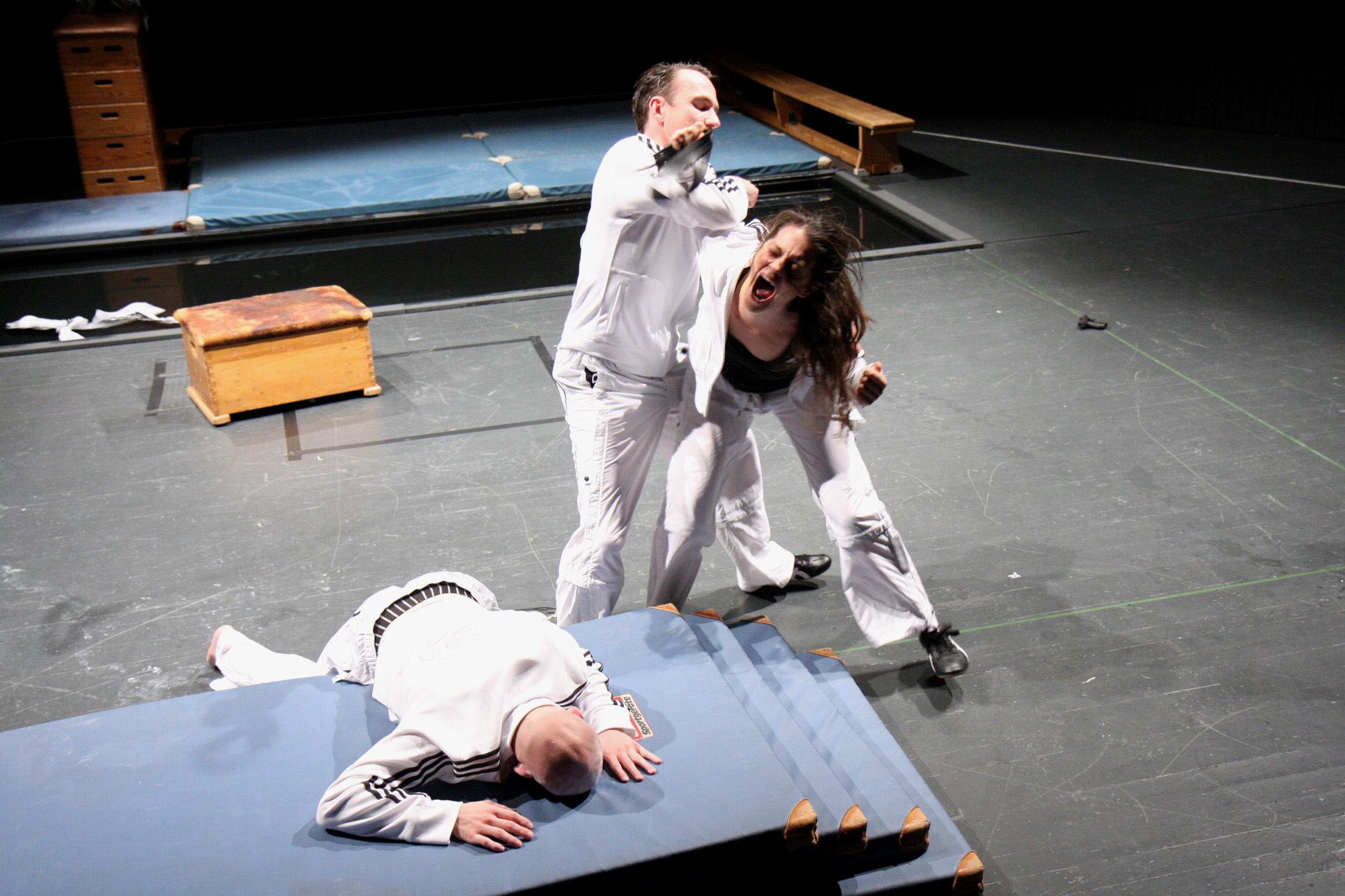 Die Inszenierung von Alexander Schilling, die auf der gleichnamigen Erzählung von Robert Musil basiert, erlebte das Premierenpublikum am Mittwochabend sehr unmittelbar. Dafür sorgte das intensive Spiel der jungen Schauspieler ebenso wie die raffinierte Bühnengestaltung. Jaqueline Schienbein hat im Kleinen Haus der Städtischen Bühnen Münster das zeitlose Interieur einer Turnhalle aufgebaut. Die Zuschauer sitzen an allen vier Seiten dieser Sportstätte, blicken nicht nur auf die Schauspieler, sondern auch auf die Zuschauer gegenüber. So wird das Publikum in das Geschehen einbezogen, wird gleichsam zu Zeugen der eskalierenden Gewalt.