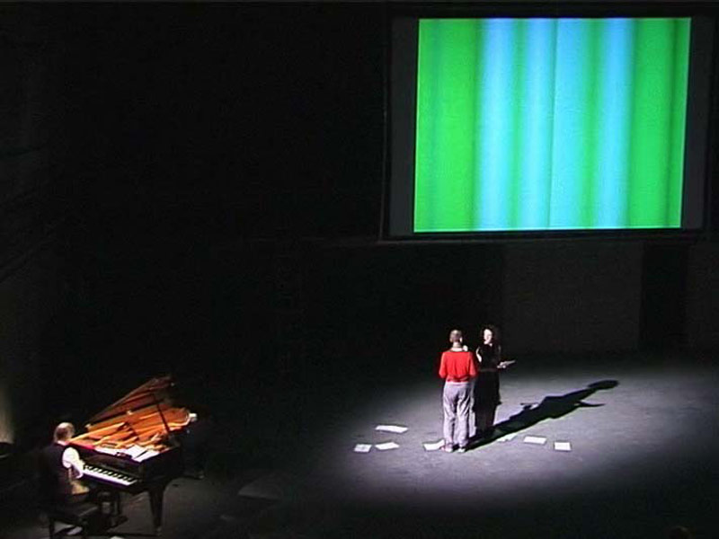 Ein schönes Bild: zwei Menschen in der Weite des Raums. Sie verlesen Namen von Pflanzen, andächtig flüsternd und wieder streng nach Alpahabet. Fast wie ein Nachruf klingt das schon; und es ist von trauriger Anmut wie am Ende des dritten Tages Papiere zu Boden schweben, als ließen müde Bäume ihr Herbstlaub fallen. „genesis - sequence.one" ist vor allem eine Ode an die Sprache. Am Anfang war das Wort.