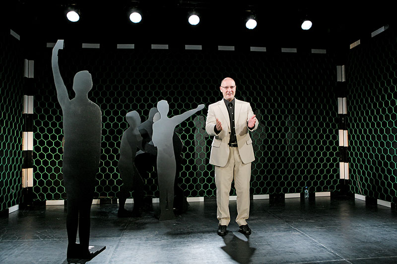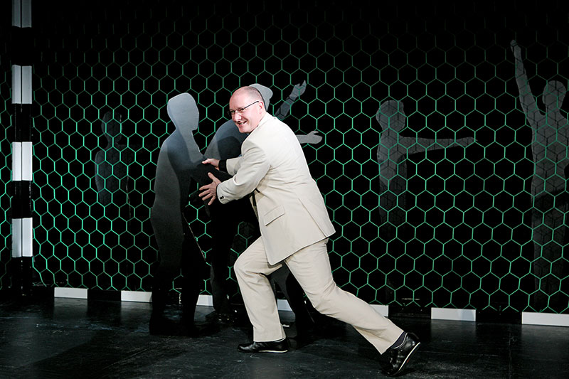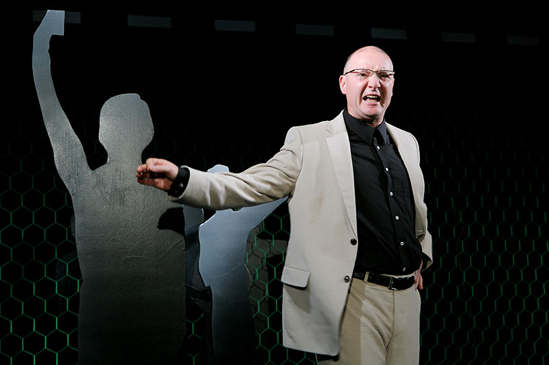 Auf der Bühne (Bühnenbild: Stephan Rinke) sind es nur ein paar Papp-Kameraden, in Wirklichkeit 22 Spieler - und die Kulisse eines fanatisierten Mobs, den er mit einer winzigen Trillerpfeife im Zaum hält. Eine glänzend gelungene Psychostudie über den Prototyp des Schiedsrichters, die nach dem Abpfiff von den Zuschauern stürmisch gefeiert wurde.