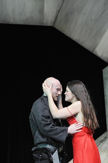 Woyzeck und Marie stehen dabei als realistisch gezeichnete Menschen den Parodien ihrer Peiniger gegenüber. Tim Mackenbrock gibt den als Versuchskaninchen und Lustobjekt missbrauchten Soldaten zunächst als sympathischen Burschen, später als zynisch Wissenden. Carolin M. Wirth muss als seine treulose Marie sehr viel Nacktheit und Brutalität aushalten, sie bewältigt die Rolle bravourös und findet die richtige Mischung aus Opfer und Verführerin. …